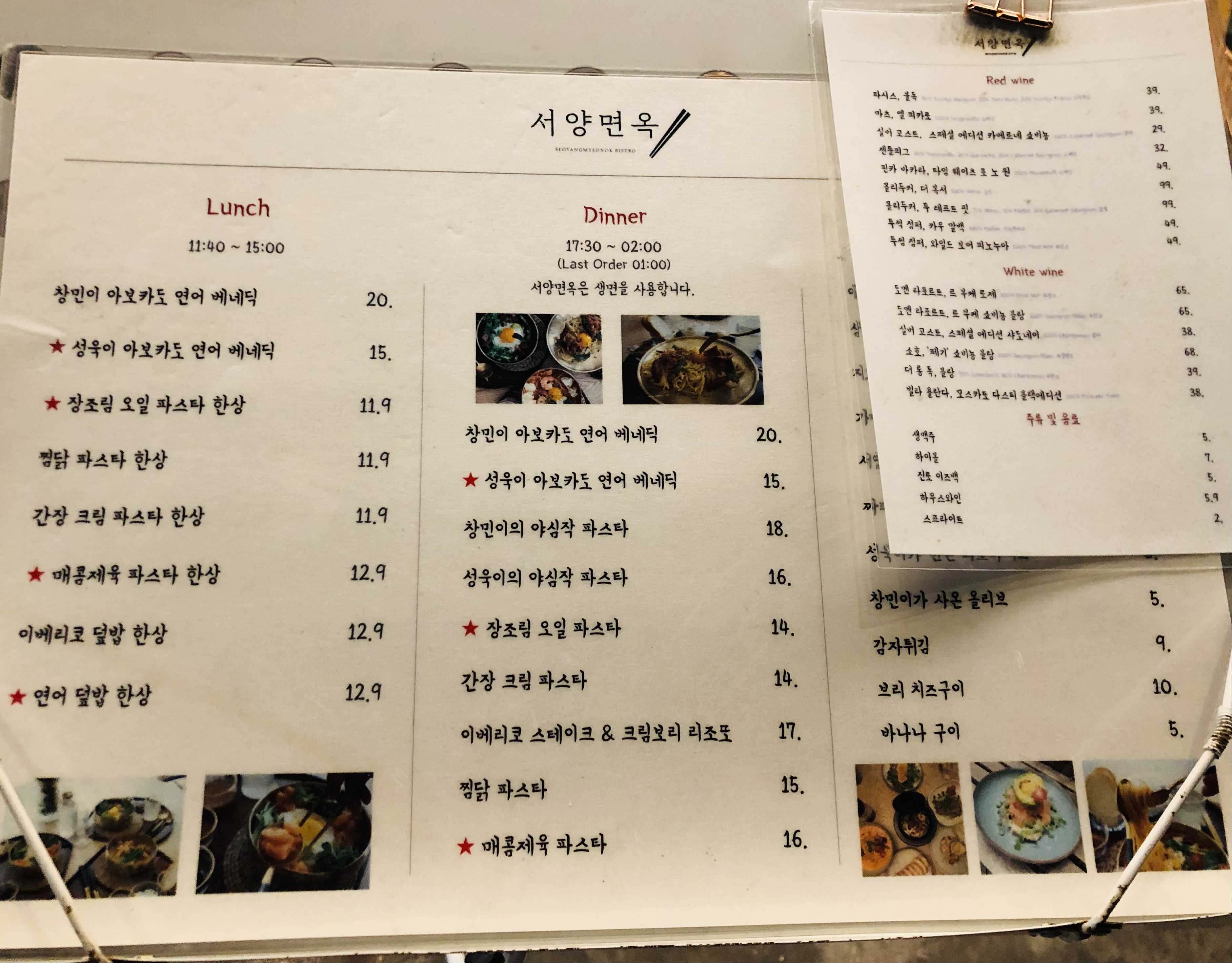 입구 밖에 세워져있던 메뉴판인데, 대기하면서 메뉴를 다 골라놨다.